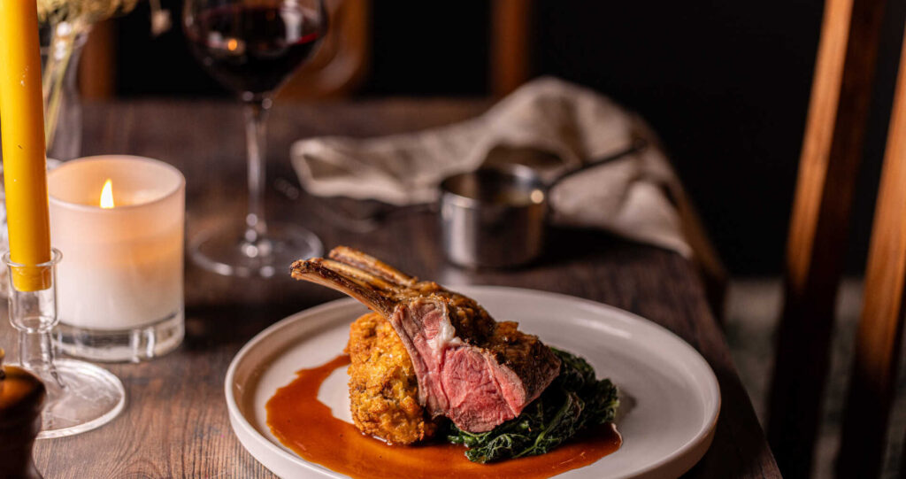 British rack of lamb, pulled lamb croquette, buttered cavolo nero, gravy | 23.5 1270 kcals